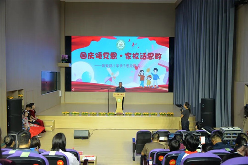 9月30日,河北省宁晋县新安路小学举办迎国庆亲子思政展演。县教育局领导,相关股室负责人,新安路小学党员教师、少先队员及家长代表参加。