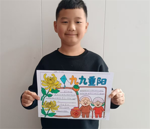 手抄报创作活动。色彩斑斓的画面、工整清晰的文字、富有创意的设计,不仅展现了学生的审美素养与动手能力,更让每一份手抄报都成为传播重阳文化、弘扬感恩精神的“小小载体”,营造了浓厚的节日文化氛围。
